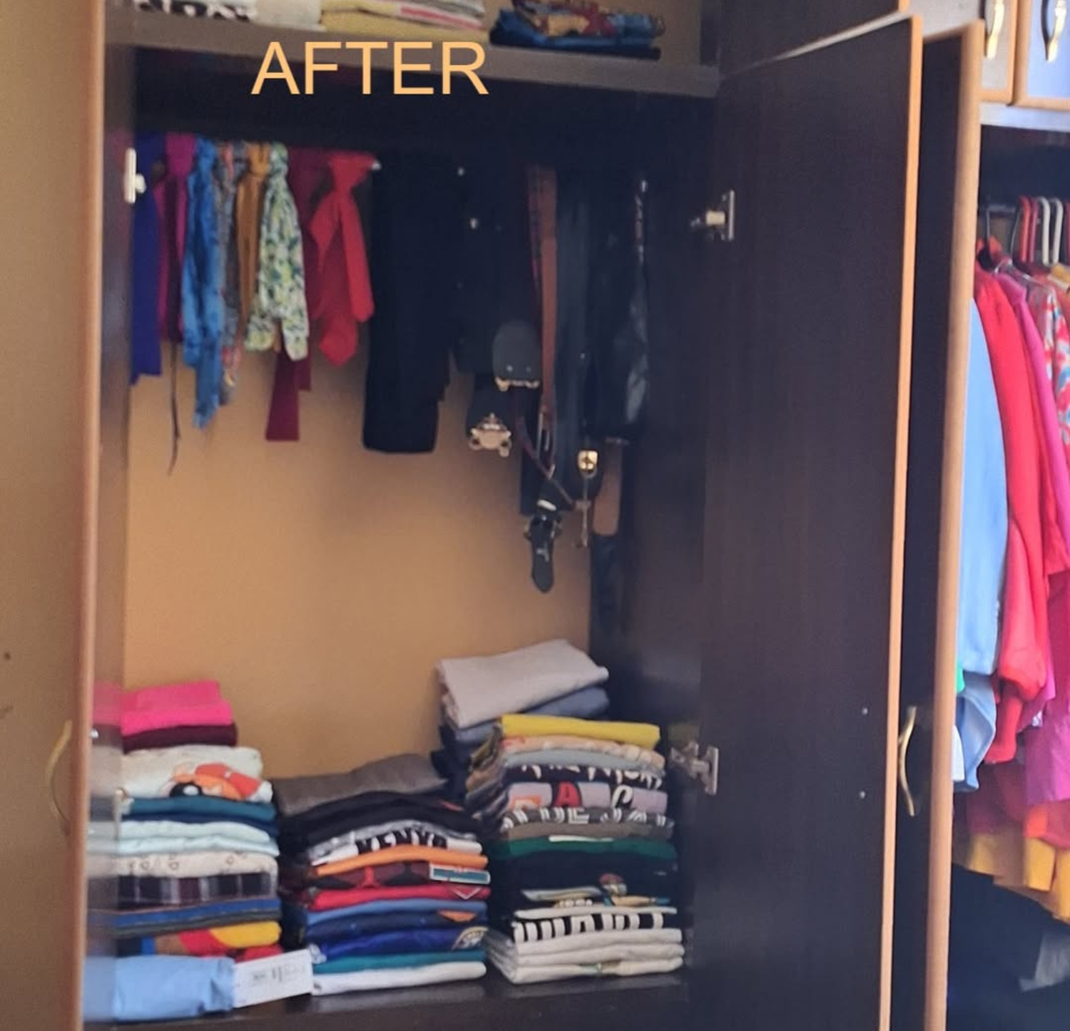 Need a wardrobe organizer to help keep clothes in order? This one saves space. Easy to use. Great for t-shirts, pants, and kids' clothes. No more mess in your wardrobe.